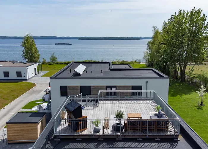 Sonnendeck Schwerin - Apartment Mit Dachterrasse, Seeblick, Parkplatz, Fahrradschuppen, King-Size Bett - Seenah Relaxen